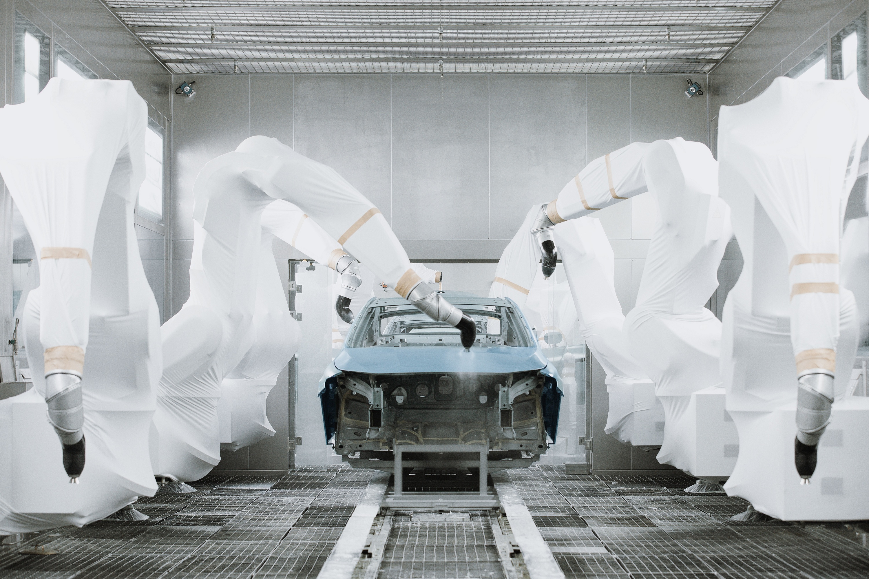在全新纯电CLA的装焊车间,数百台机器人协同作业。项目团队经过300天全工艺验证和多轮迭代优化,应用了数百套尺寸精度方案反复验证车身强度,确保该车型超高的车身连接技术一次合格率,与此同时,车间涂胶工艺更是达到100%合格。