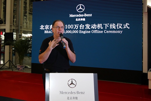 [Mr. Rene Reif, Executive Vice President of Engineering & Manufacturing of BBAC, delivers a speech] On June 13, 2016, BAIC Motor Corporation Ltd. signed a framework agreement a framework with Daimler, aiming to increase the capital by RMB 4 billion, which will be used for further expanding BBAC’s Engine Plant. This is an important agreement, representing the determination of Mercedes-Benz brand to deeply root in Chinese market; BBAC has reached a new level in manufacturing and management capacity and BBAC Engine Plant has entered a new chapter. “Three years ago, we might worry about whether we could create the maximum value even BBAC has the most advanced engine production line? Now, this question has an affirmative answer”. Mr. Chen Hongliang (Senior Executive Vice President of BBAC) stated at the off-line ceremony. The offline of the 1,000,000th locally-produced Mercedes-Benz engine manifests that BBAC has not only made a breakthrough in corporate strength and but also cultivated an outstanding technician team that can fully meet Daimler’s world-leading production process requirements.